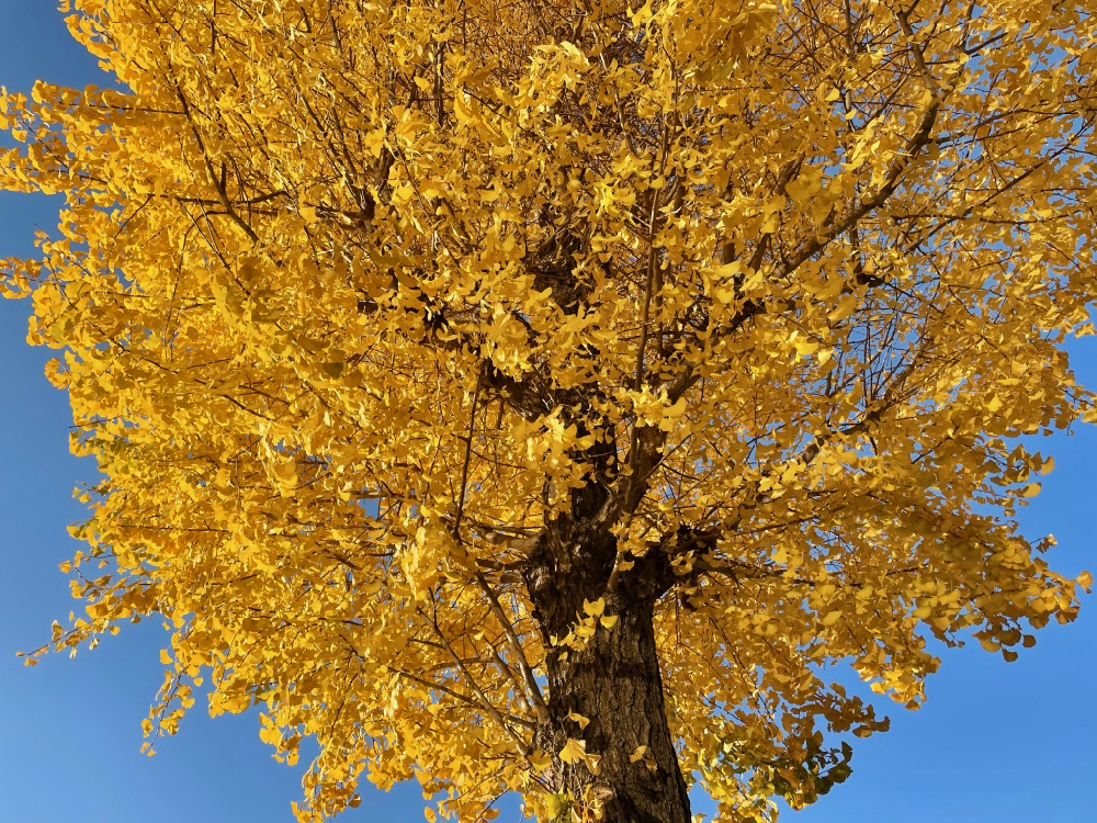 よく晴れた日は、青空とイチョウのコントラストがまぶしい〜
