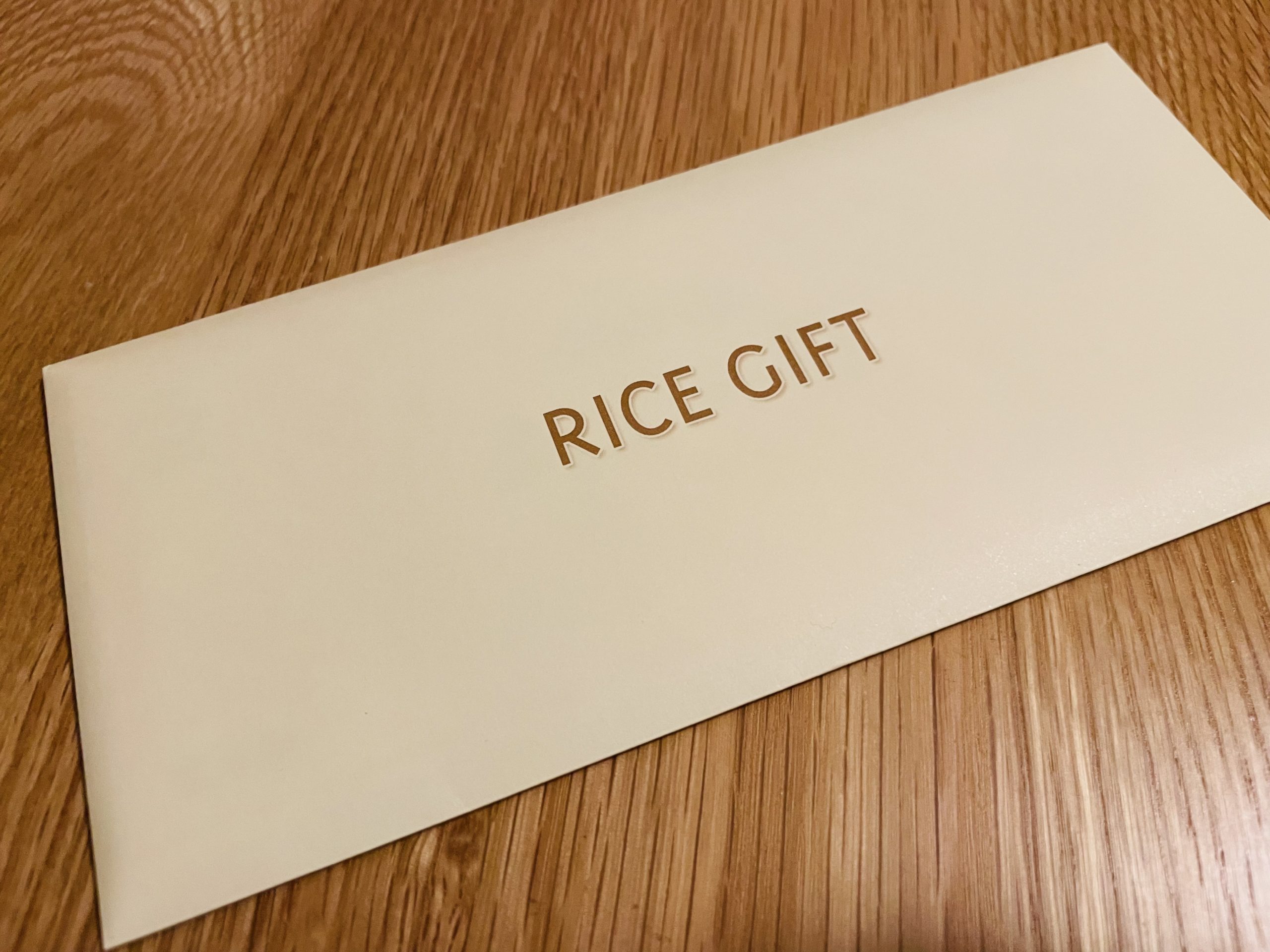 封筒に「RICE GIFT」って書いてあったのが、なんかよくわかんないけど面白かった